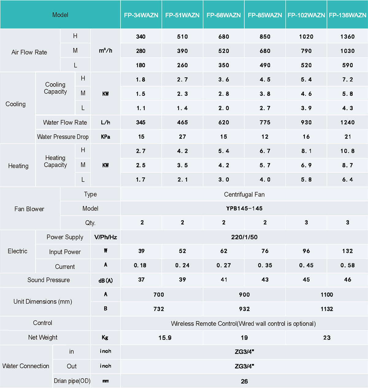 2. Wired wall controller is optional;